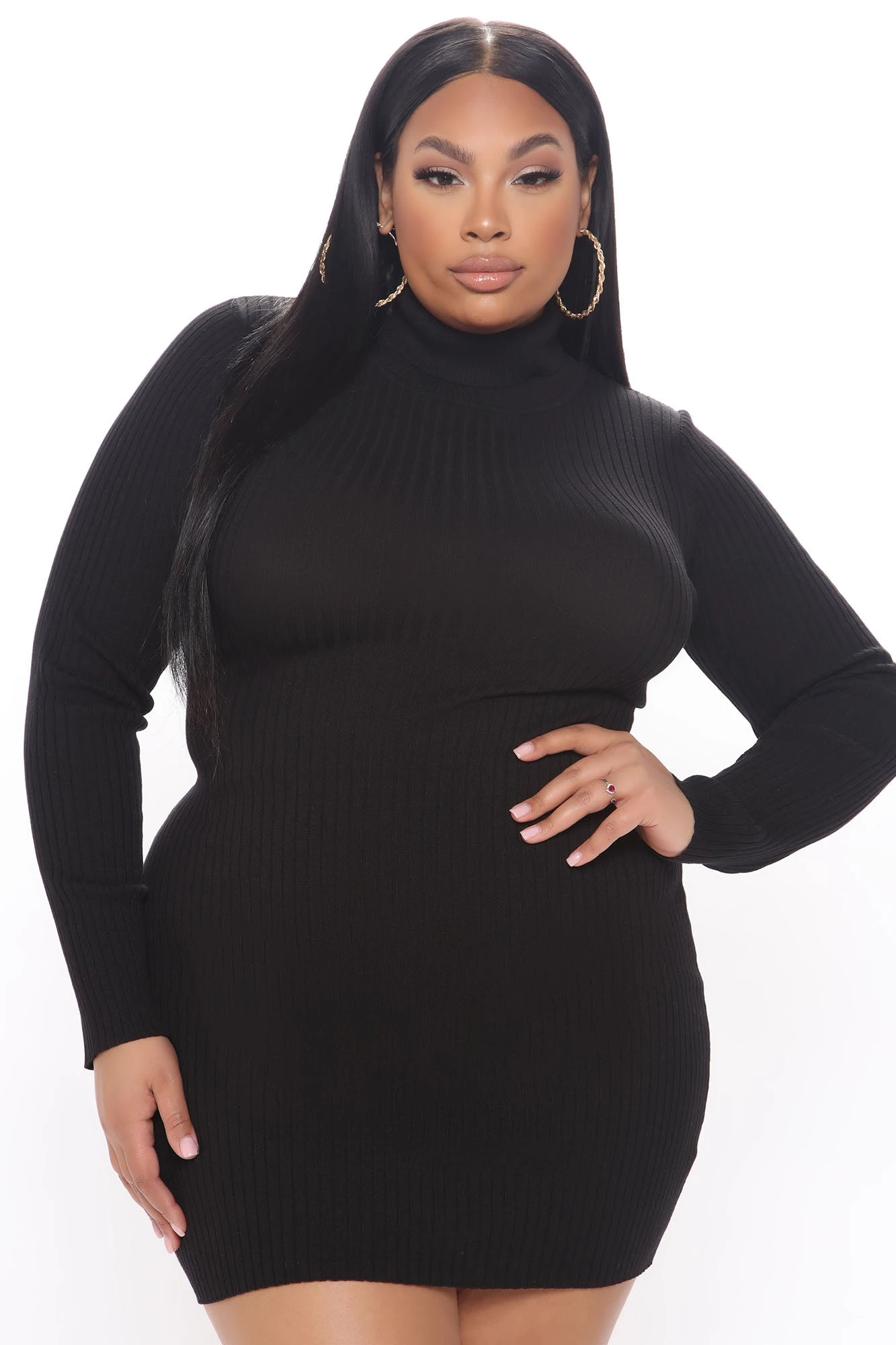 Fashion Nova Ready For Knit Sweater Mini Dress – Black