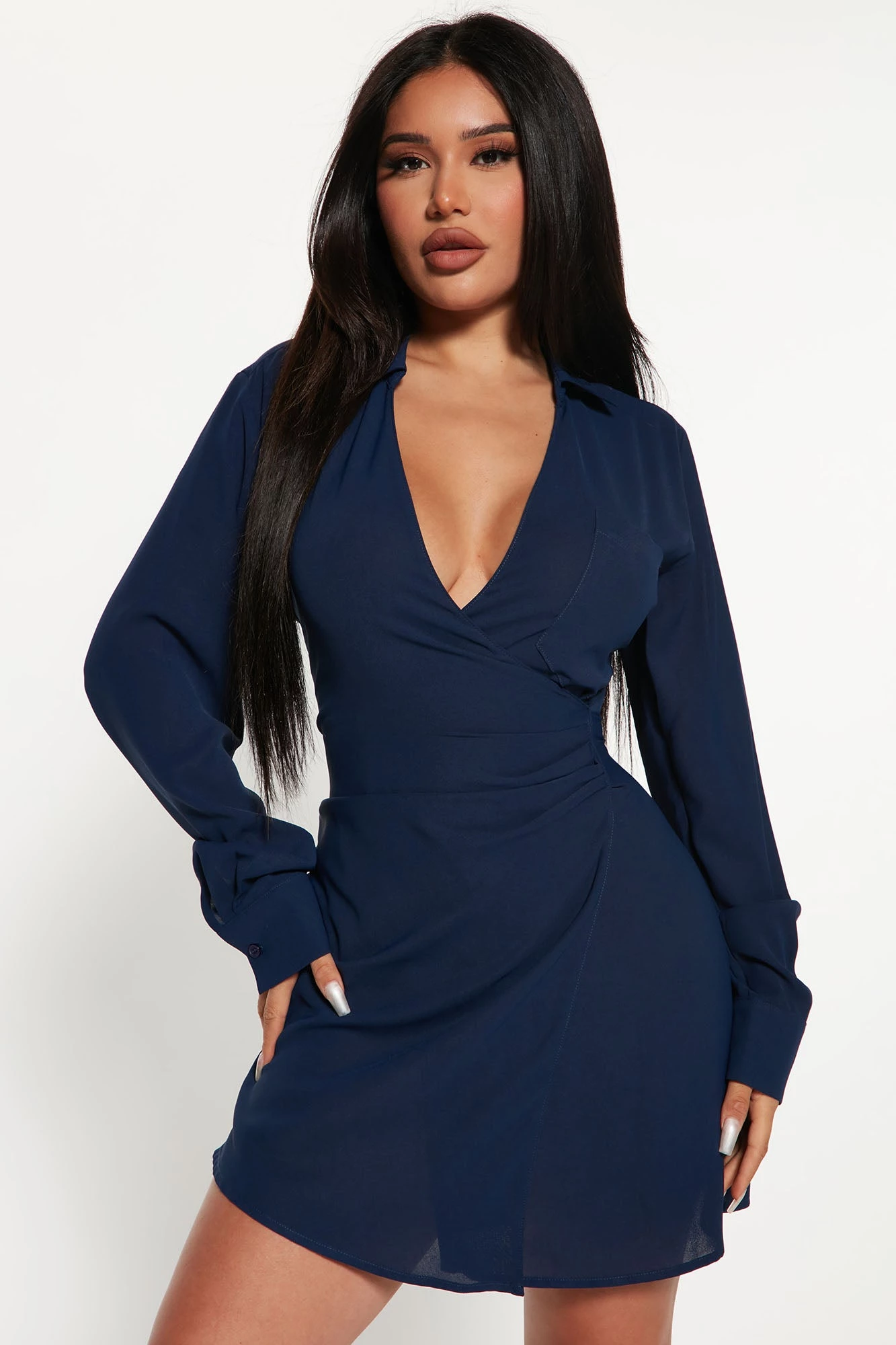 Fashion Nova Rewind Time Shirt Dress – Navy