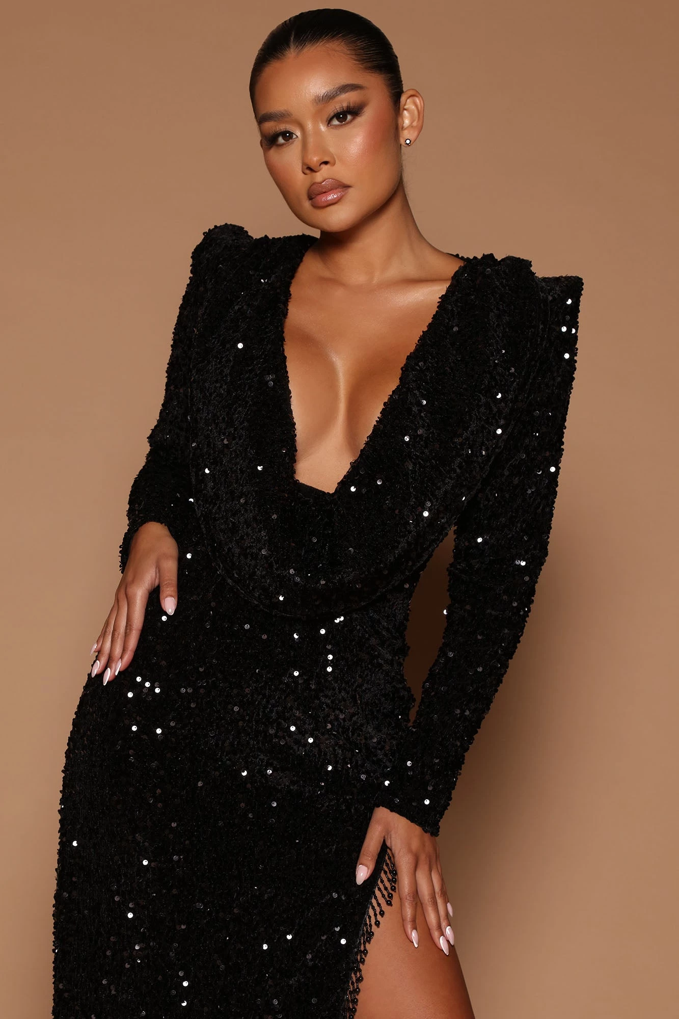 Fashion Nova Rihanna Sequin Maxi Dress – Black