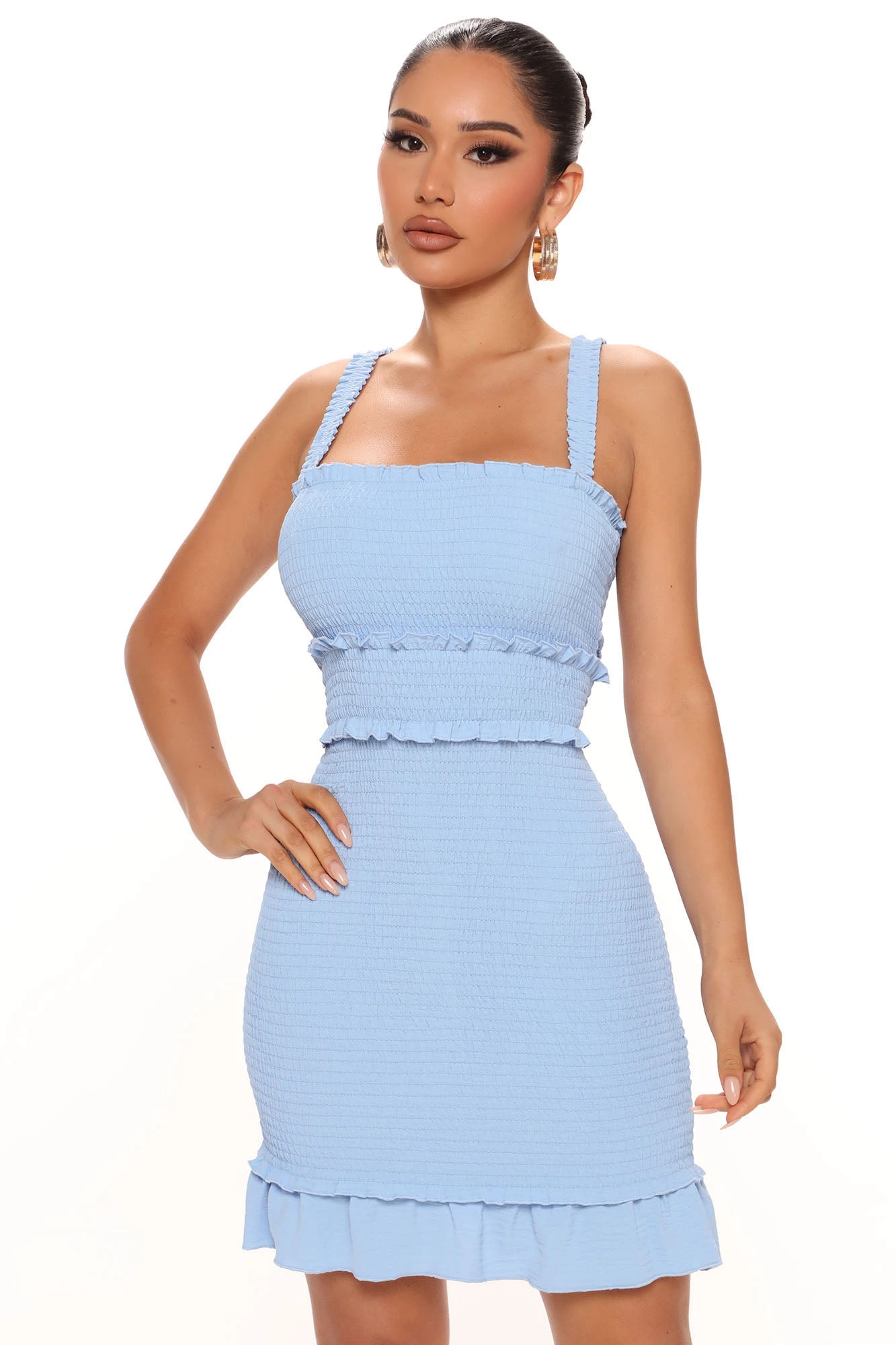 Fashion Nova Robyn Smocked Mini Dress – Blue