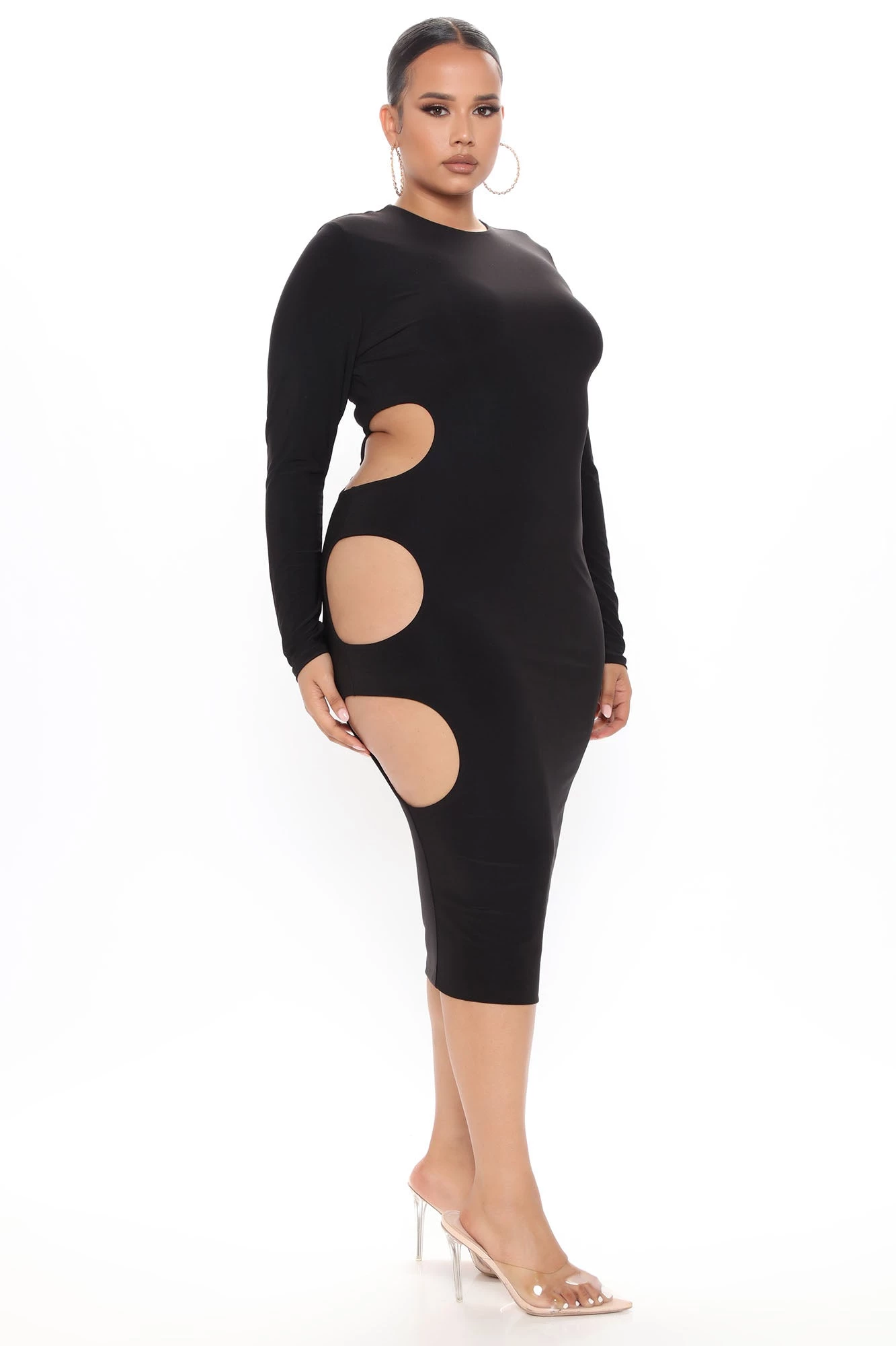 Fashion Nova Rocking Body Cut Out Midi Dress – Black