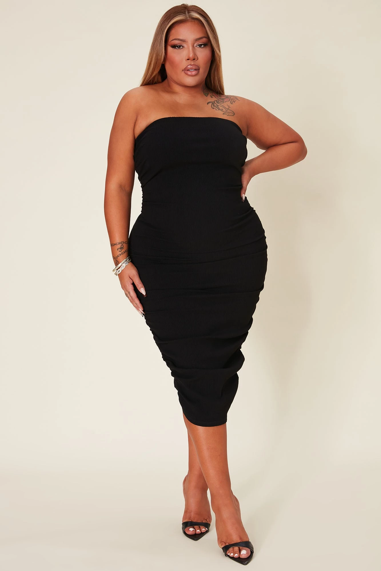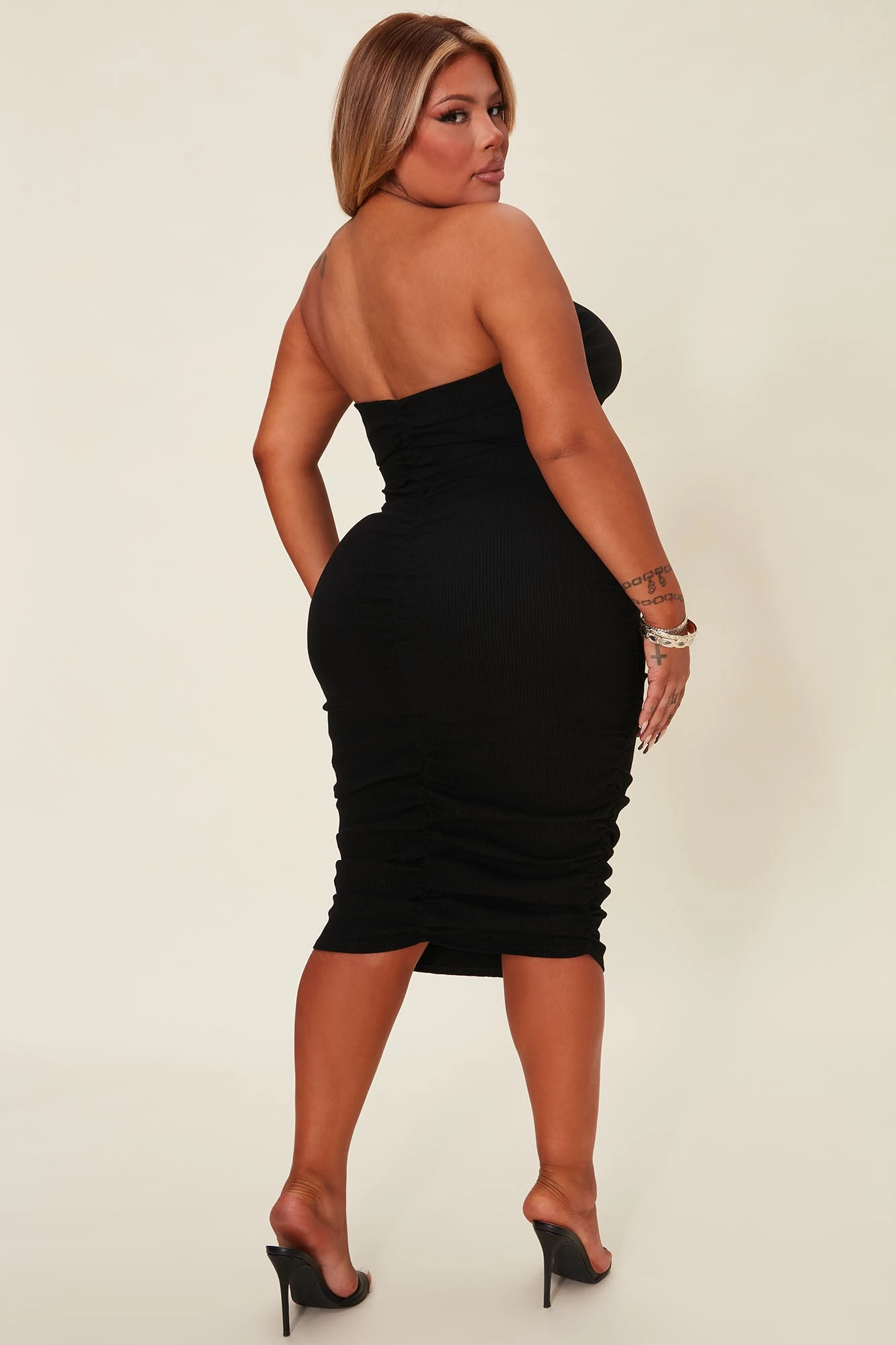 Fashion Nova Roxy Ruched Snatched Dress – Black