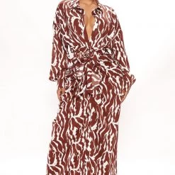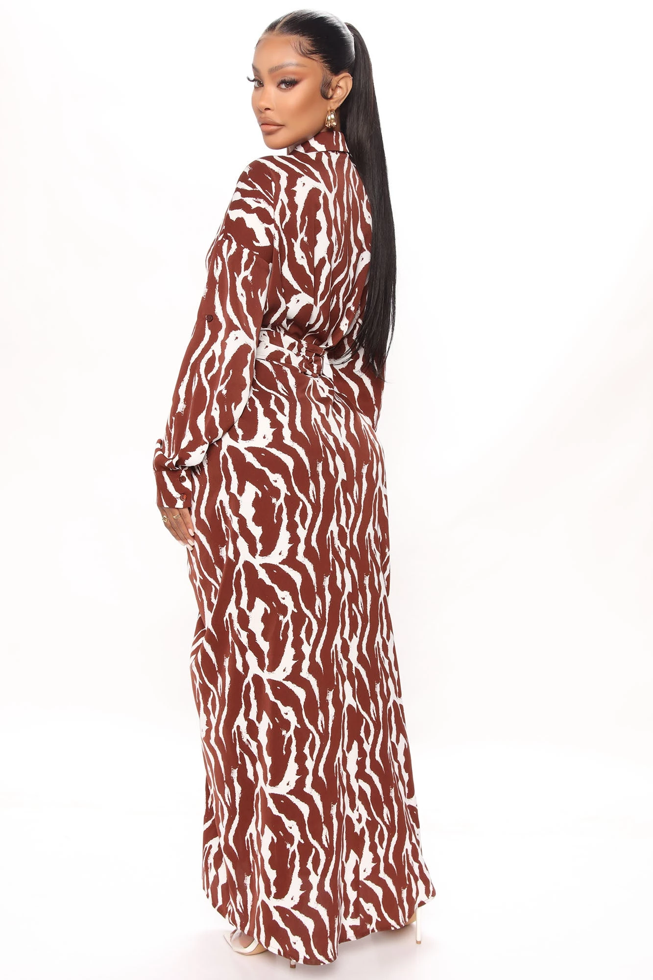 Fashion Nova Safari Vibes Maxi Dress – Brown/combo