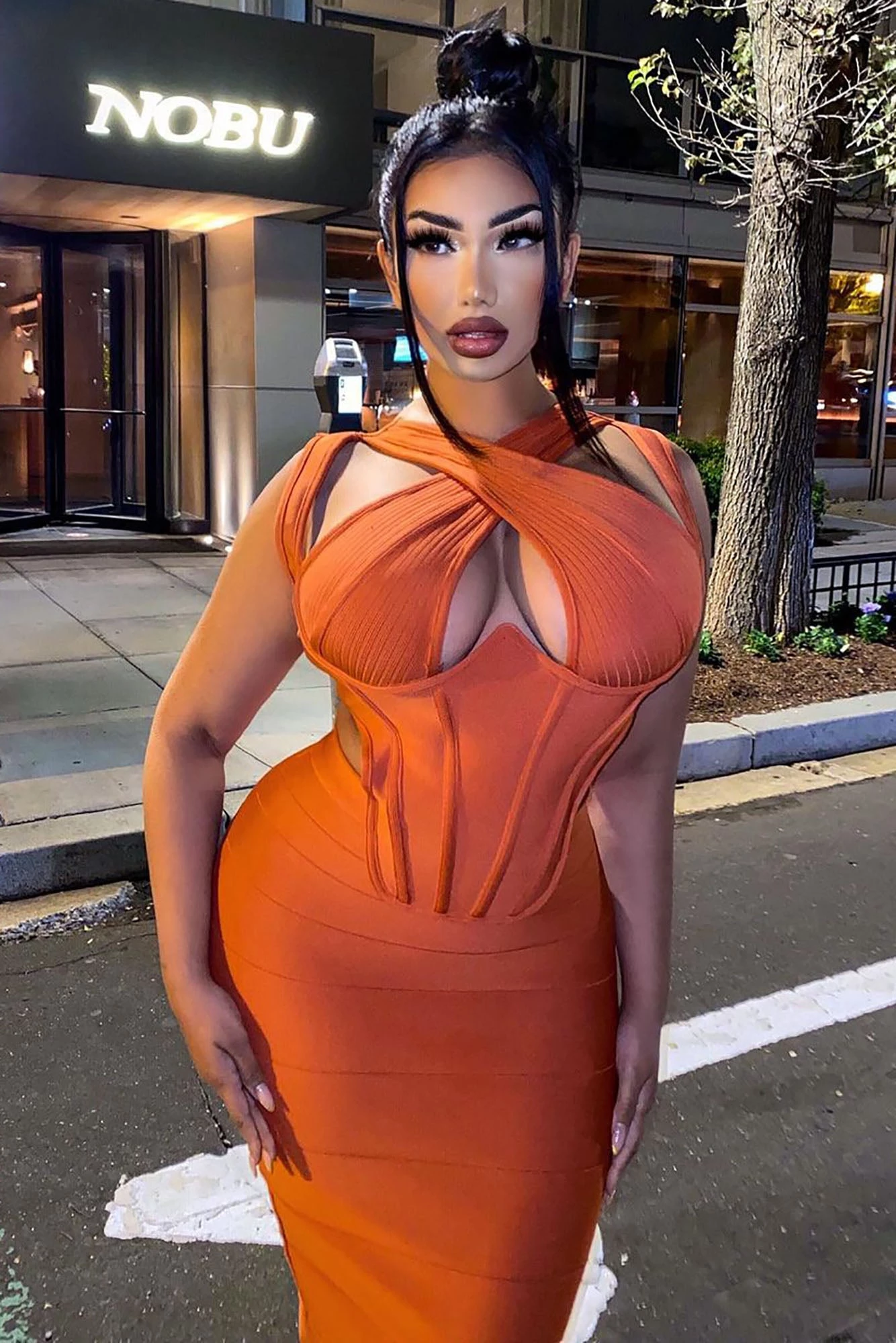 Fashion Nova Sending My Best Bandage Midi Dress – Rust