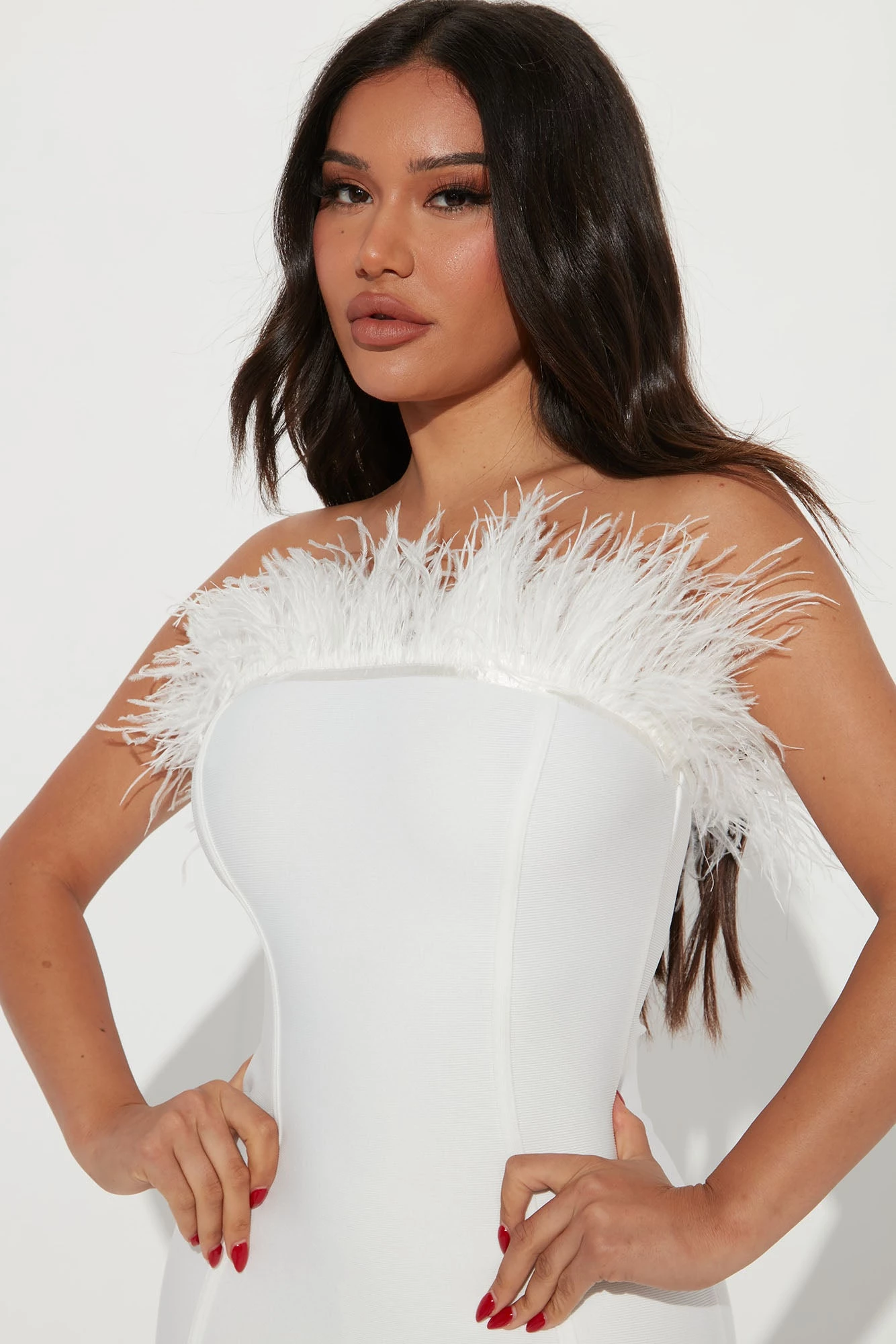 Fashion Nova Serena Bandage Feather Midi Dress – White