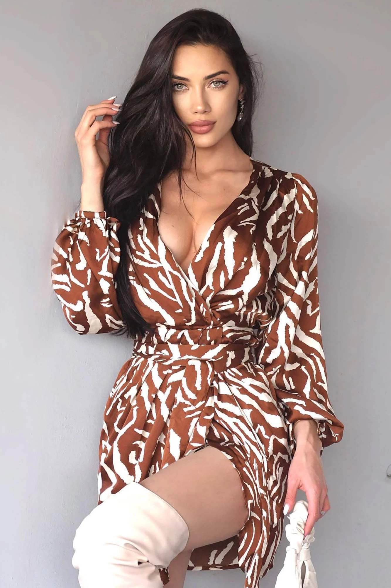 Fashion Nova She’s An Animal Mini Dress – Brown/combo