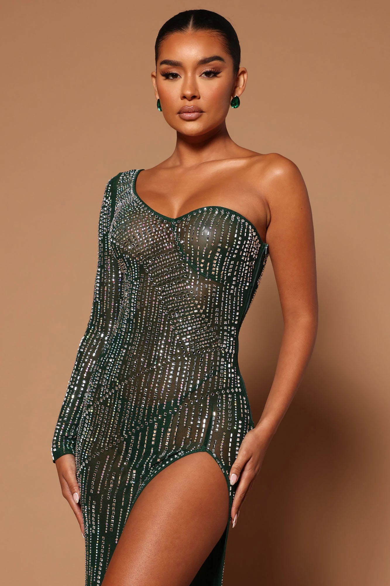 Fashion Nova Show Stunner Embellished Maxi Dress – Hunter
