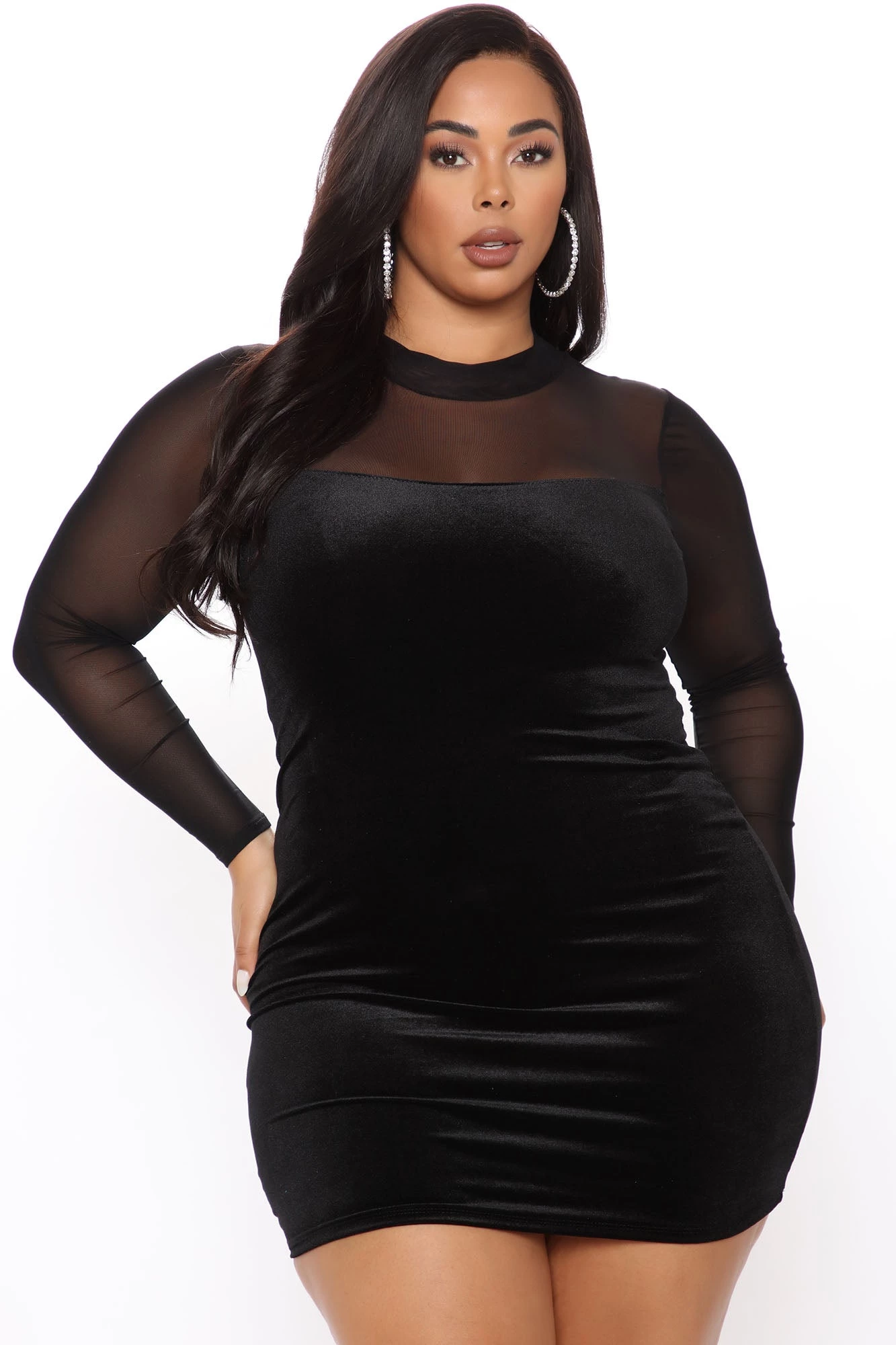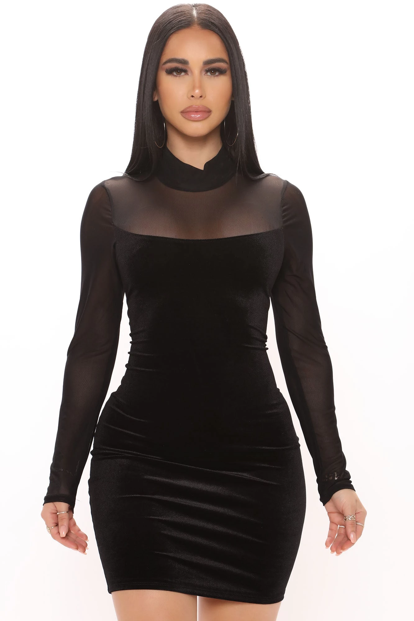 Fashion Nova Sierra Velvet Mini Dress – Black