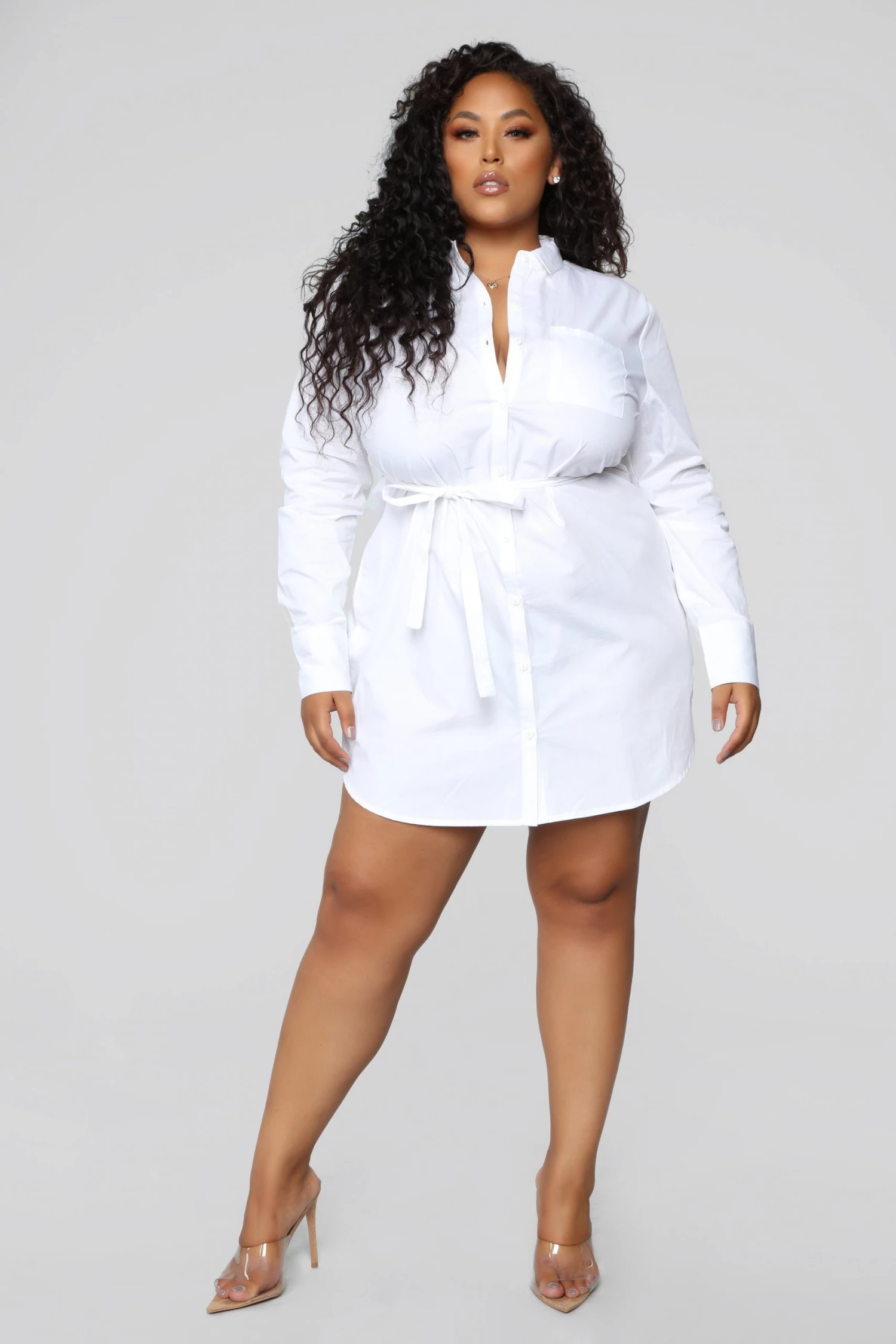 SKU: 95037947921 Category: Short & Mini Dresses Tags: All Promo, Back in Stock, Bossbabe, color:White, ColorFam-White, detail:Belted Waist, Dresses, fallbogo, figure:Plus