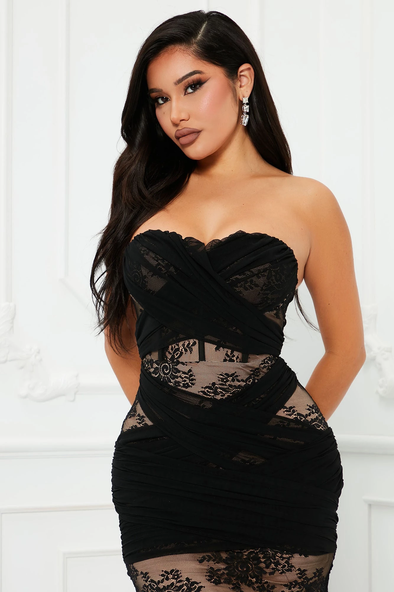 Fashion Nova Take Me Away Lace Maxi Dress – Black