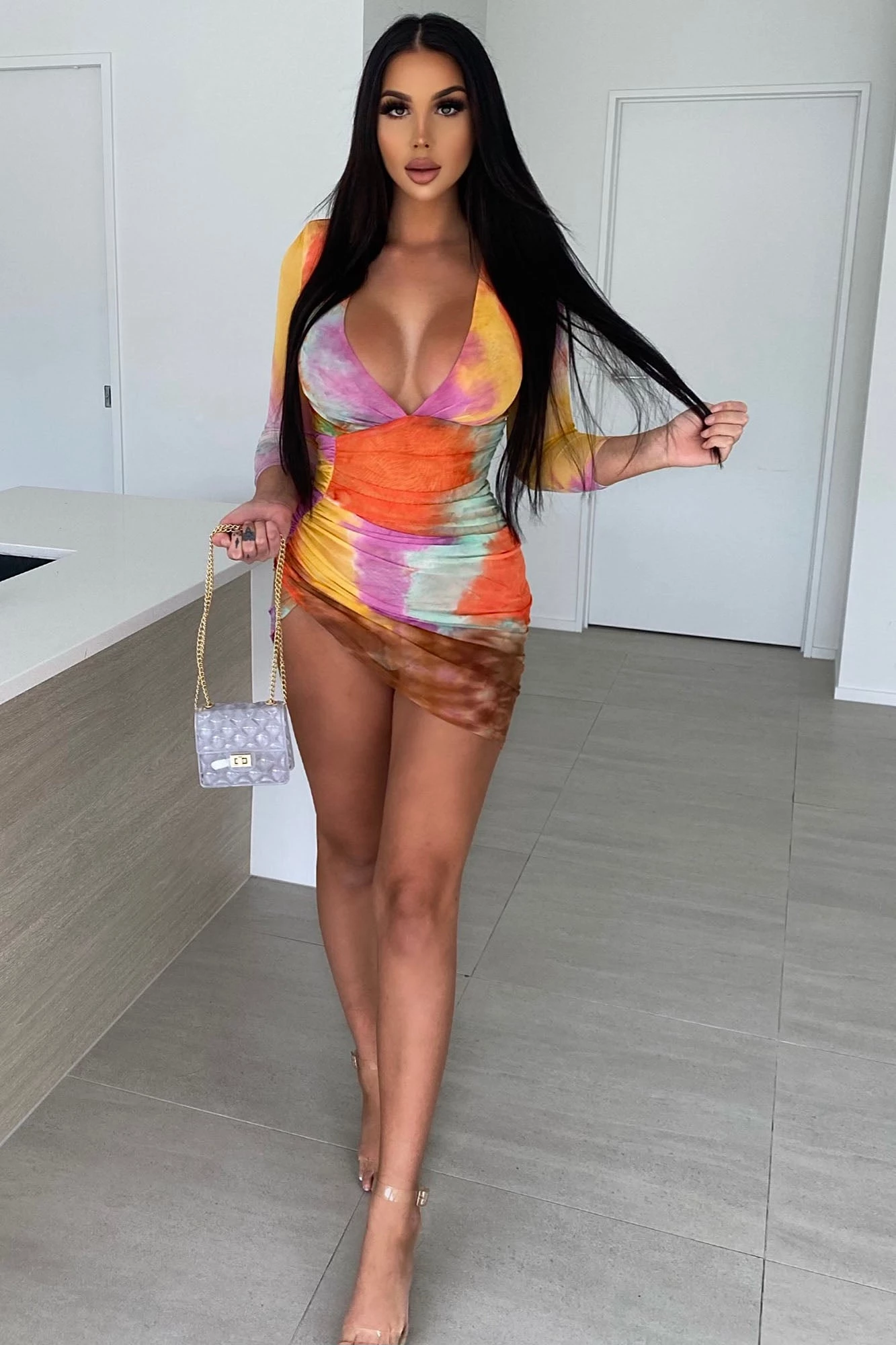 Fashion Nova Tie Dye Me Down Mesh Midi Dress – Multi Color