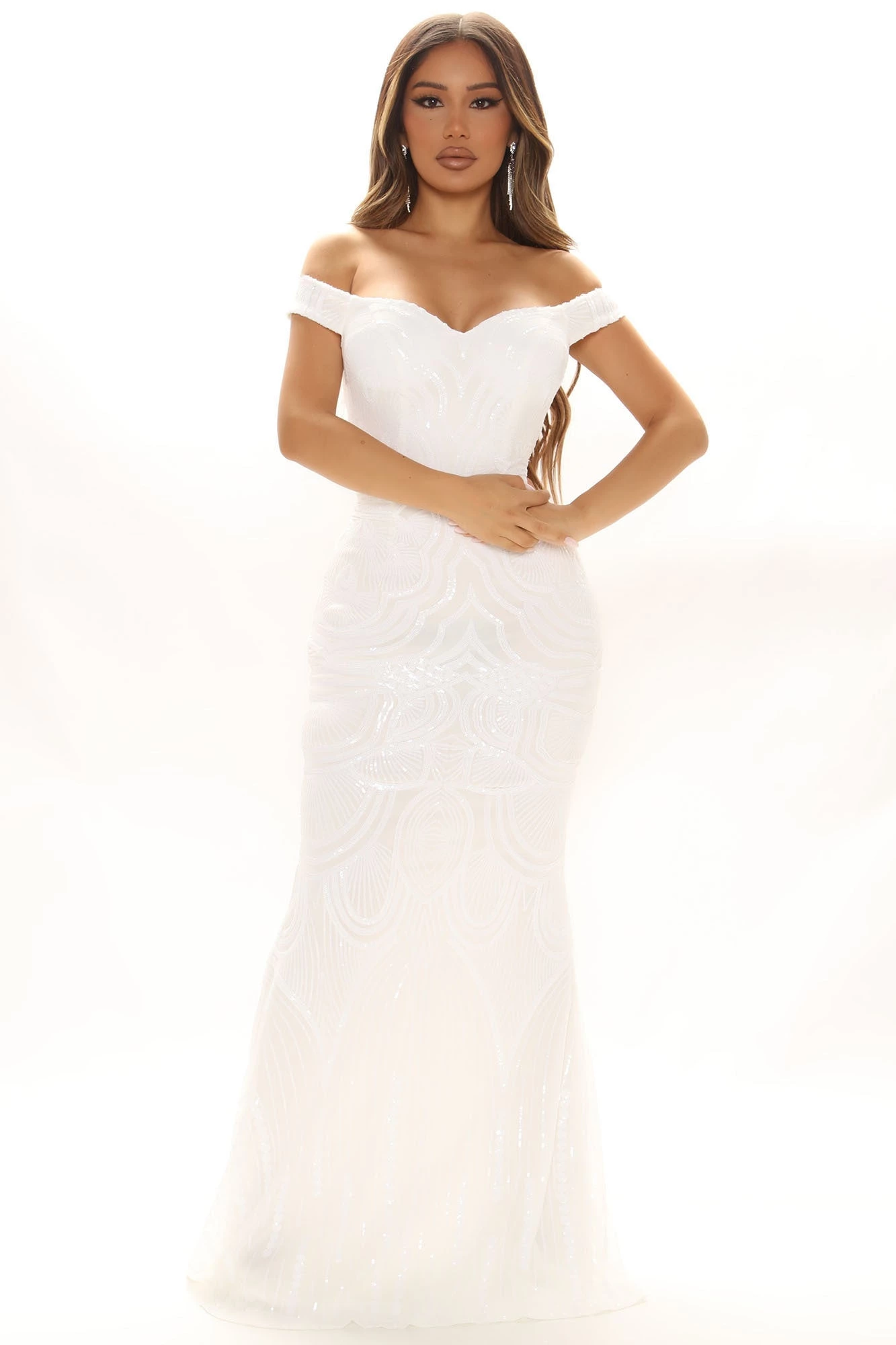 Fashion Nova Until The Weekend Sequin Maxi Dress – White