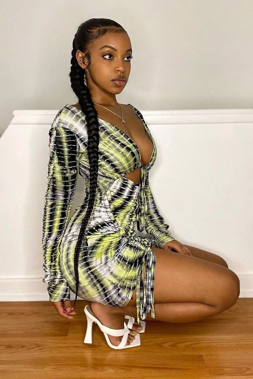 Fashion Nova Watch Me Ruche Tie Dye Mini Dress – Green