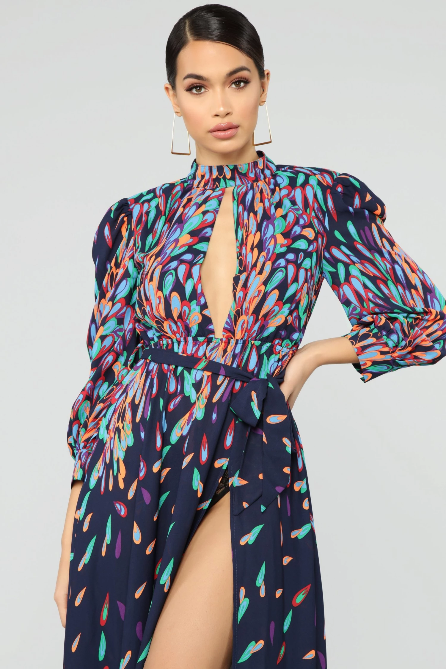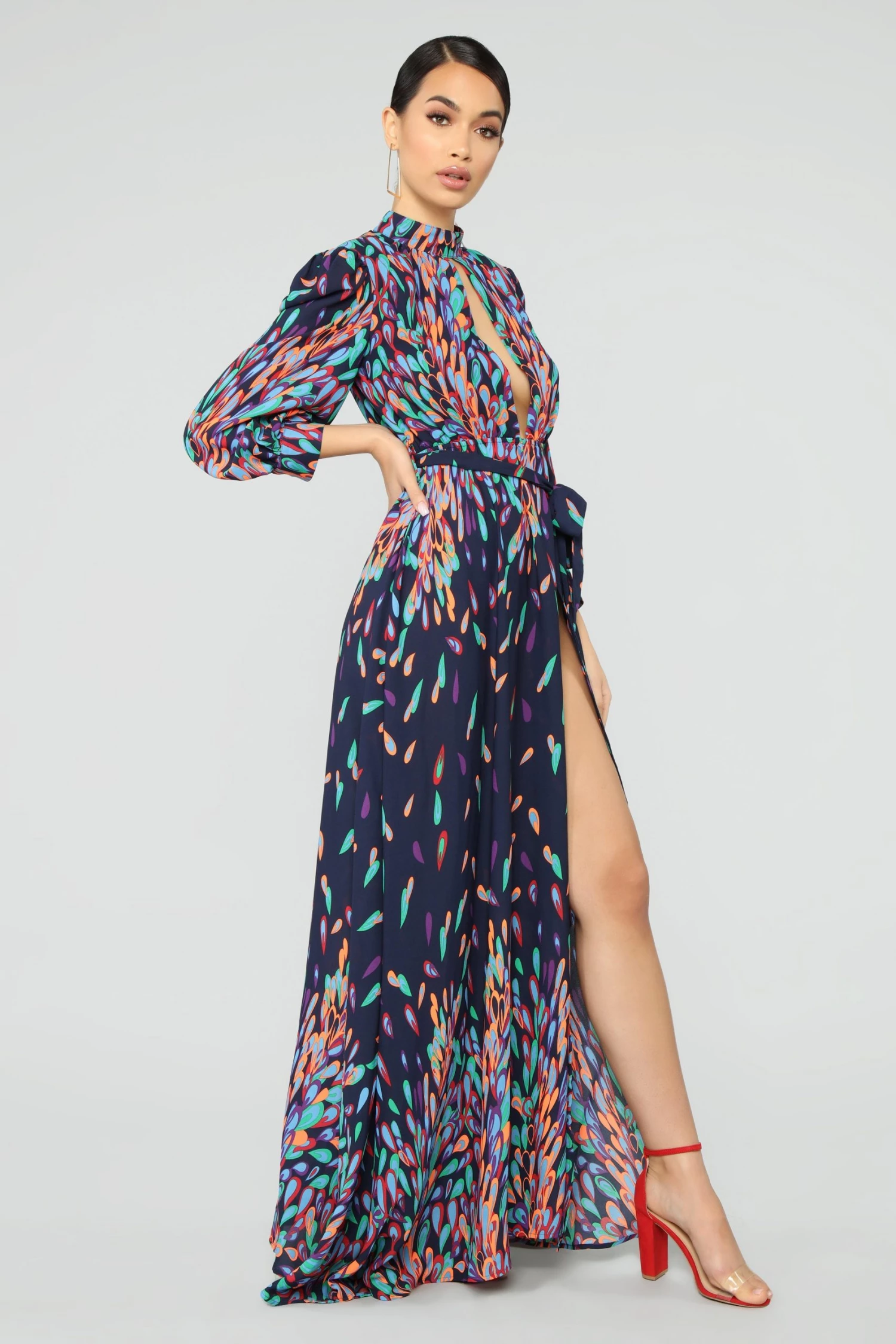 Fashion Nova Wings Of A Feather Maxi Dress – Navy