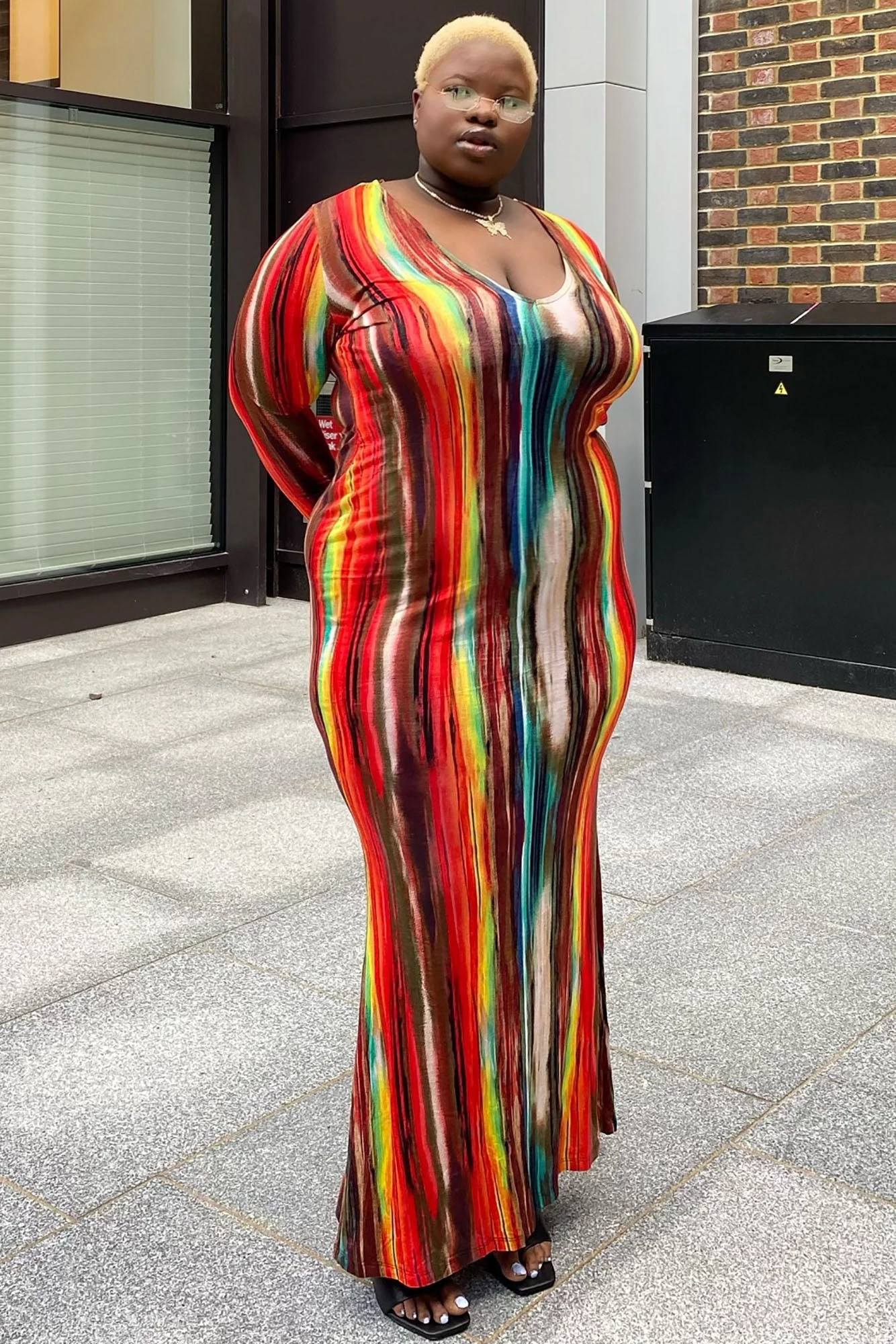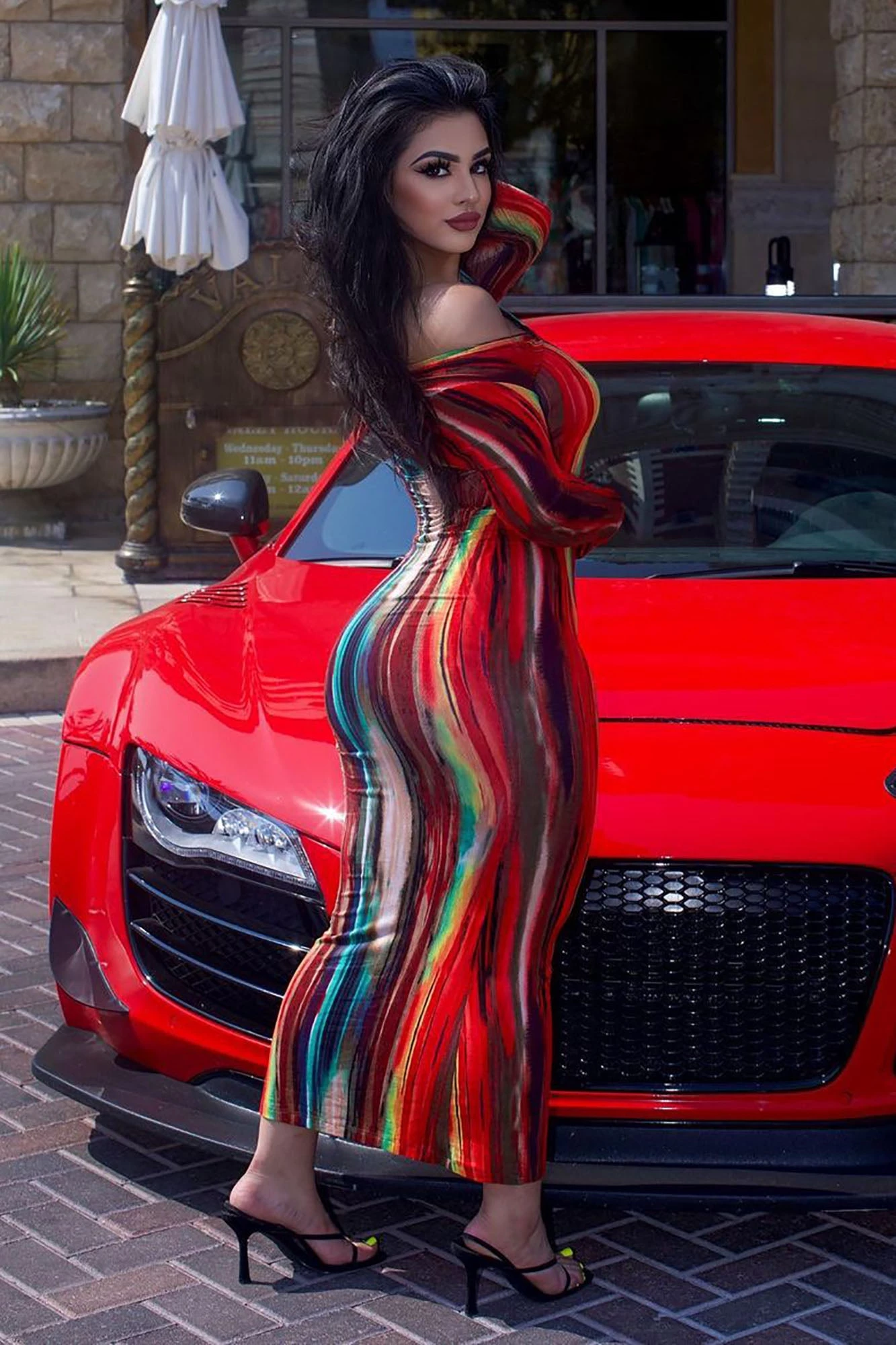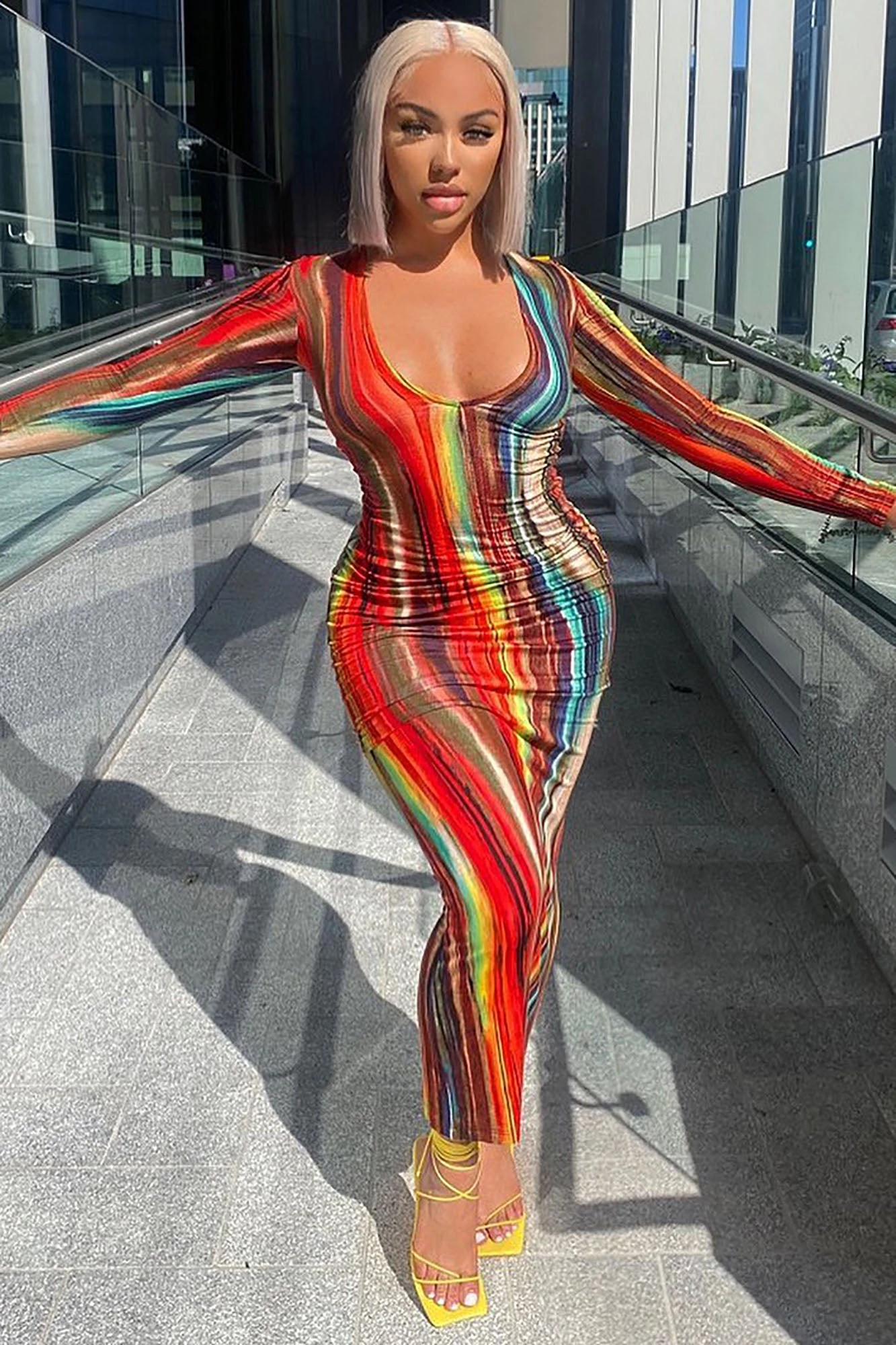 Fashion Nova Work Of Art Long Sleeve Maxi Dress – Multi Color