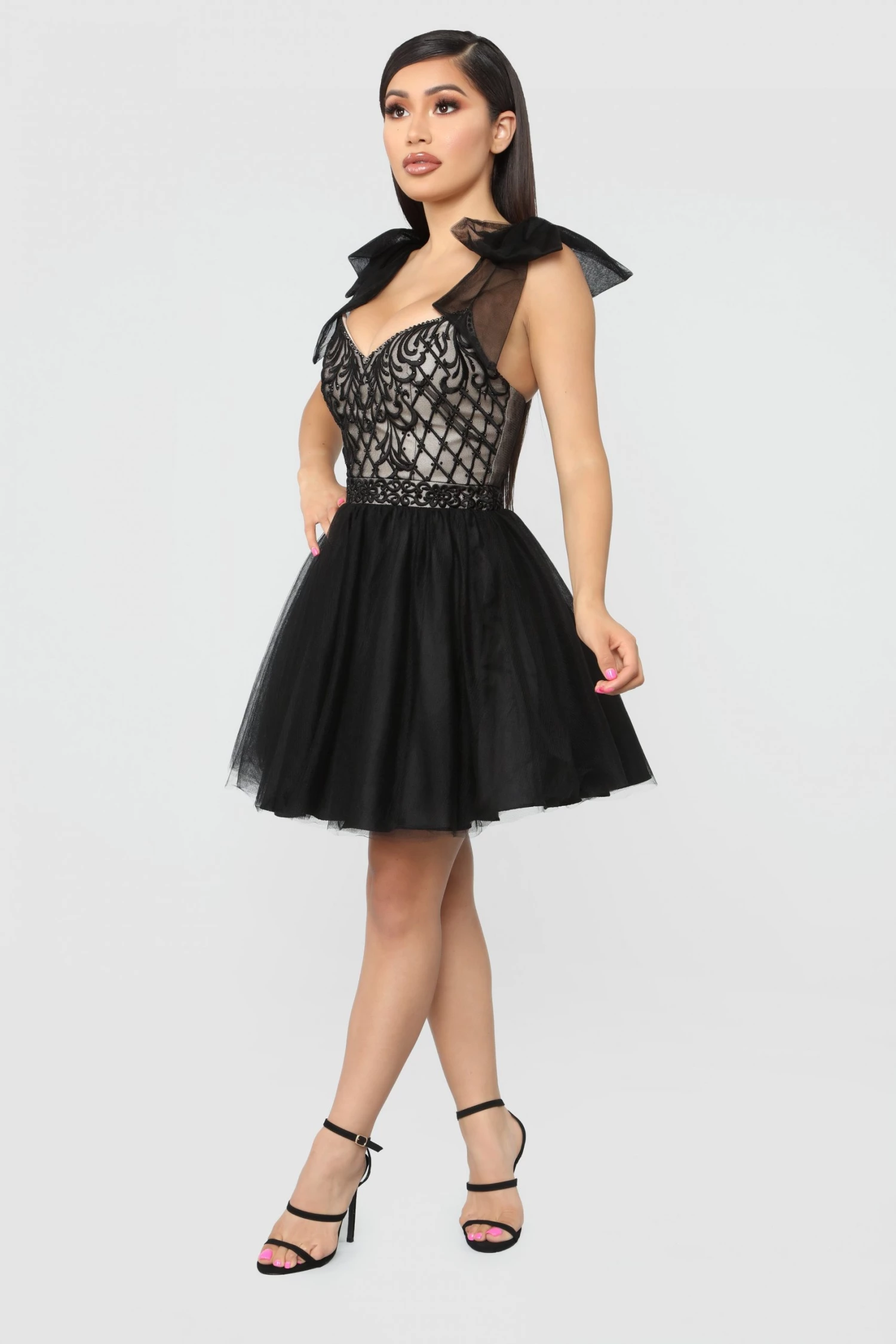 - Shoulder Ruffle Mini Dress